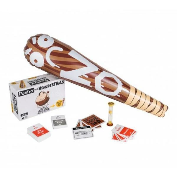 Poetry for Neanderthals is a family-friendly party game similar to Taboo where players earn points by getting their teammates to guess words and phrases. The catch is that the “Neanderthal Poets” are only allowed to use single syllable words. If they use any words with more than one syllable, the other team gets to bop them with a 2-foot inflatable club. The team with the most points wins!